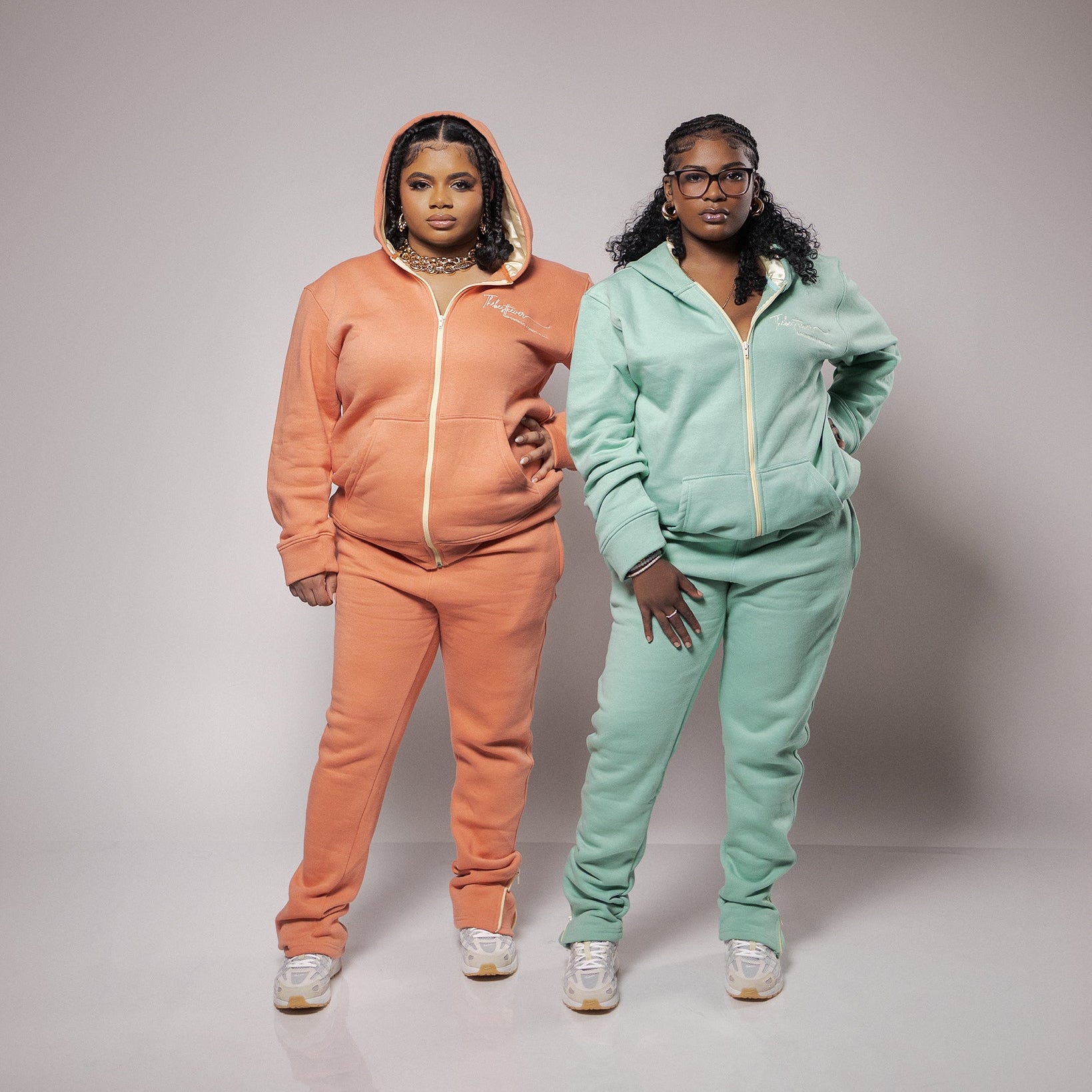 Available in Watermelon and Seafoam, this two-piece set is crafted from buttery soft non-pile fabric for an all-day cozy feel without sacrificing style. With versatility in mind: a satin-lined hoodie for elevated ease and joggers with or without zippers so you can go from laid-back to bossed-up in seconds.